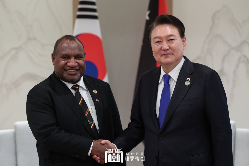 ※ (파푸아뉴기니(PNG)) 윤석열 대통령은 약 1천만 인구의 PNG는 태평양 지역의 관문 국가로서 양국간 인적교류와 경제 교역이 활발히 이루어지고 있음을 평가하고, 파푸아뉴기니가 역내 리더국가로서 인태 지역의 공동 번영을 위하여 한국과 함께 노력해 나가자고 했습니다. 또한 대통령은 부산 엑스포 유치에 대한 PNG의 지지 입장에 사의를 표했습니다. 마라페 총리는 한국이 파푸아뉴기니 발전의 롤모델인 만큼 앞으로도 다양한 협력이 이루어지기를 기대한다고 했습니다. 특히 작년에 양국의 교역규모(18억불)가 전년대비 2.4배 증가했다면서, 천연자원(석유, 금, 가스 등)이 풍부한 PNG는 세계 최고 수준의 한국 제조업 기업들의 투자와 진출을 강력히 희망한다고 했습니다. 또, 마라페 총리의 PNG 포트모르즈비(Port Moresby) 내 KOICA 사무소 재개소 요청에 대통령은 PNG의 중요성을 감안해 검토해 보겠다고 화답했습니다.